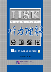 This is a volume of Intensive Training for HSK (Elementary-Intermediate) series. It includes 18 sets of simulated listening comprehension tests with the script and answer keys attached at the end of this book.